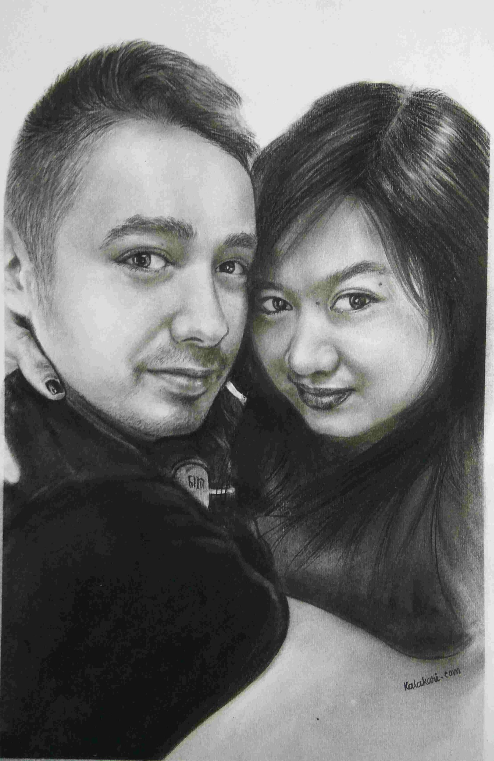 - Each portrait is drawn entirely by hand on premium paper.